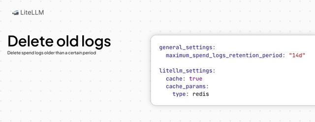 - Spend Logs Retention Period: Enable deleting spend logs older than a certain period.