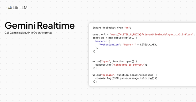 - Gemini Realtime API: You can now call Gemini's Live API via the OpenAI /v1/realtime API